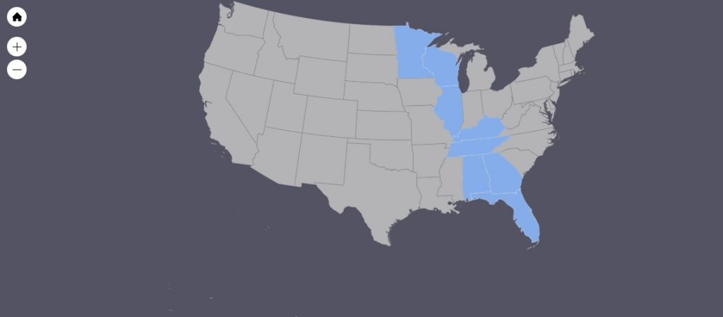 We arrived in Florida to stay for a few weeks. Starting in Minnesota, we visited Wisconsin, Illinois, Kentucky, Tennessee, Georgia, Alabama and Florida.